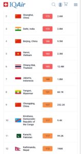 हिजोसम्म वायु प्रदूषण मापनमा विश्वमै पहिलो स्थानमा रहेको काठमाडौँ उपत्यका आज १० औँ स्थानमा झरेको छ।