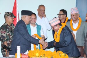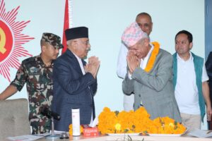 काठमाडौँ, सोमबार — प्रधानमन्त्री एवं नेकपा (एमाले)का अध्यक्ष केपी शर्मा ओलीले सोमबार पार्टी केन्द्रीय कार्यालय, च्यासलमा आयोजित विशेष समारोहमार्फत मदन–आश्रित स्मृति प्रतिष्ठानको नवनिर्वाचित अध्यक्ष प्रदीपकुमार ज्ञवाली र कार्यसमिति सदस्यहरूलाई शपथ ग्रहण गराएका छन्।